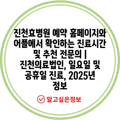진천효병원 예약 홈페이지와 어플에서 확인하는 진료시간 및 추천 전문의 | 진천의료법인, 일요일 및 공휴일 진료, 2025년 정보