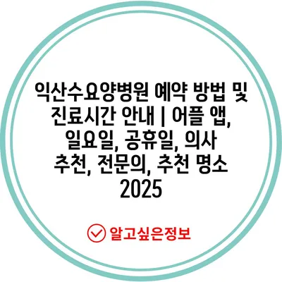 익산수요양병원 예약 방법 및 진료시간 안내 | 어플 앱, 일요일, 공휴일, 의사 추천, 전문의, 추천 명소 2025