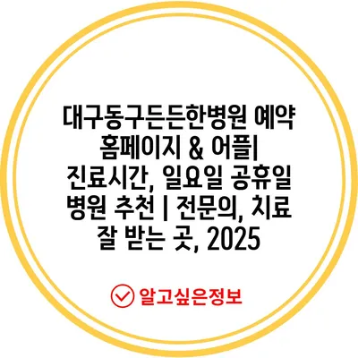 대구동구든든한병원 예약 홈페이지 & 어플| 진료시간, 일요일 공휴일 병원 추천 | 전문의, 치료 잘 받는 곳, 2025