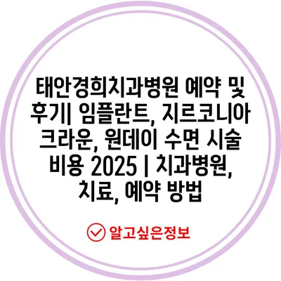 태안경희치과병원 예약 및 후기| 임플란트, 지르코니아 크라운, 원데이 수면 시술 비용 2025 | 치과병원, 치료, 예약 방법