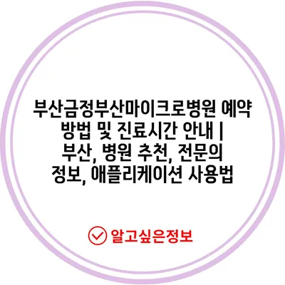 부산금정부산마이크로병원 예약 방법 및 진료시간 안내 | 부산, 병원 추천, 전문의 정보, 애플리케이션 사용법