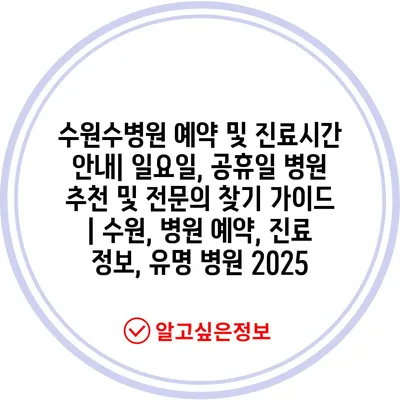 수원수병원 예약 및 진료시간 안내| 일요일, 공휴일 병원 추천 및 전문의 찾기 가이드 | 수원, 병원 예약, 진료 정보, 유명 병원 2025