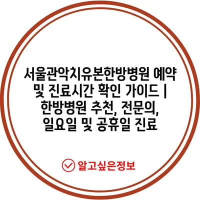 서울관악치유본한방병원 예약 및 진료시간 확인 가이드 | 한방병원 추천, 전문의, 일요일 및 공휴일 진료