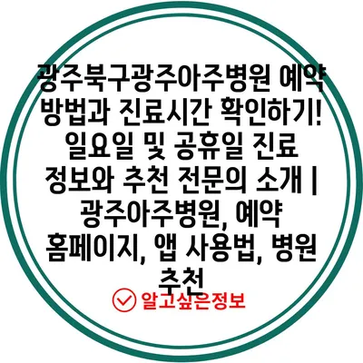 광주북구광주아주병원 예약 방법과 진료시간 확인하기! 일요일 및 공휴일 진료 정보와 추천 전문의 소개 | 광주아주병원, 예약 홈페이지, 앱 사용법, 병원 추천