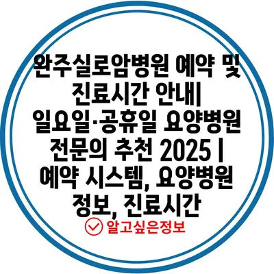 완주실로암병원 예약 및 진료시간 안내| 일요일·공휴일 요양병원 전문의 추천 2025 | 예약 시스템, 요양병원 정보, 진료시간