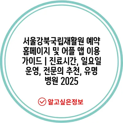 서울강북국립재활원 예약 홈페이지 및 어플 앱 이용 가이드 | 진료시간, 일요일 운영, 전문의 추천, 유명 병원 2025