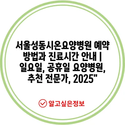 서울성동시온요양병원 예약 방법과 진료시간 안내 | 일요일, 공휴일 요양병원, 추천 전문가, 2025″