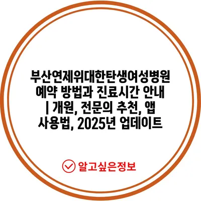부산연제위대한탄생여성병원 예약 방법과 진료시간 안내 | 개원, 전문의 추천, 앱 사용법, 2025년 업데이트