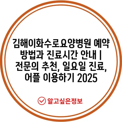 김해이화수로요양병원 예약 방법과 진료시간 안내 | 전문의 추천, 일요일 진료, 어플 이용하기 2025