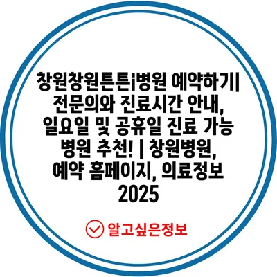 창원창원튼튼i병원 예약하기| 전문의와 진료시간 안내, 일요일 및 공휴일 진료 가능 병원 추천! | 창원병원, 예약 홈페이지, 의료정보 2025