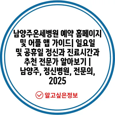 남양주온세병원 예약 홈페이지 및 어플 앱 가이드| 일요일 및 공휴일 정신과 진료시간과 추천 전문가 알아보기 | 남양주, 정신병원, 전문의, 2025
