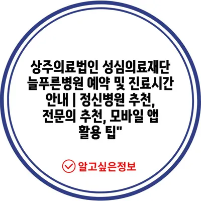 상주의료법인 성심의료재단 늘푸른병원 예약 및 진료시간 안내 | 정신병원 추천, 전문의 추천, 모바일 앱 활용 팁”