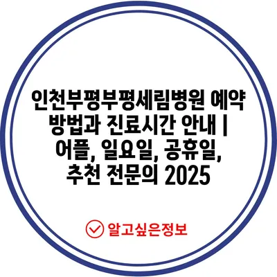 인천부평부평세림병원 예약 방법과 진료시간 안내 | 어플, 일요일, 공휴일, 추천 전문의 2025