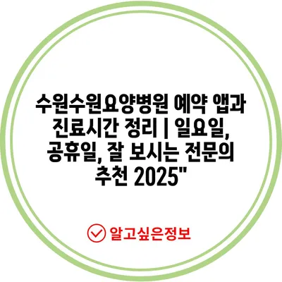 수원수원요양병원 예약 앱과 진료시간 정리 | 일요일, 공휴일, 잘 보시는 전문의 추천 2025″