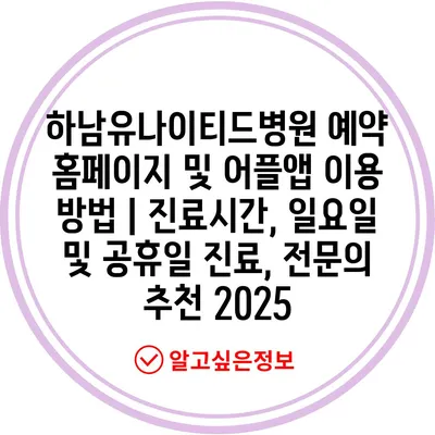 하남유나이티드병원 예약 홈페이지 및 어플앱 이용 방법 | 진료시간, 일요일 및 공휴일 진료, 전문의 추천 2025