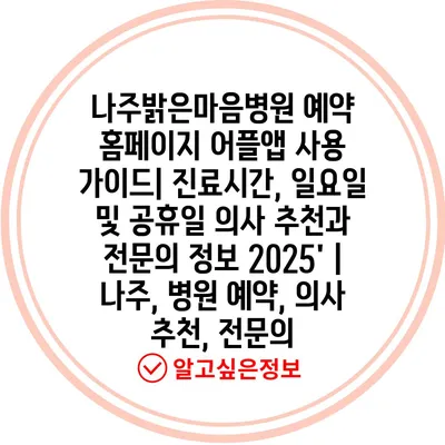 나주밝은마음병원 예약 홈페이지 어플앱 사용 가이드| 진료시간, 일요일 및 공휴일 의사 추천과 전문의 정보 2025′ | 나주, 병원 예약, 의사 추천, 전문의