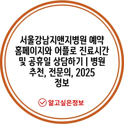 서울강남지앤지병원 예약 홈페이지와 어플로 진료시간 및 공휴일 상담하기 | 병원 추천, 전문의, 2025 정보