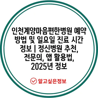 인천계양마음편한병원 예약 방법 및 일요일 진료 시간 정보 | 정신병원 추천, 전문의, 앱 활용법, 2025년 정보