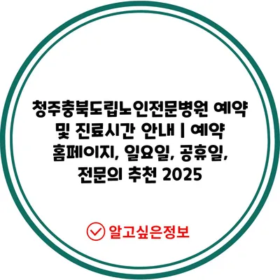 청주충북도립노인전문병원 예약 및 진료시간 안내 | 예약 홈페이지, 일요일, 공휴일, 전문의 추천 2025