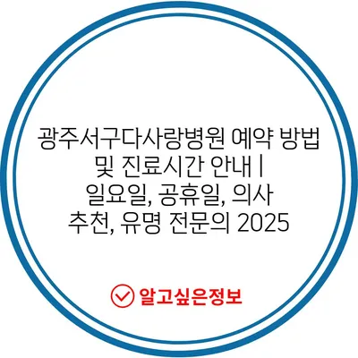 광주서구다사랑병원 예약 방법 및 진료시간 안내 | 일요일, 공휴일, 의사 추천, 유명 전문의 2025