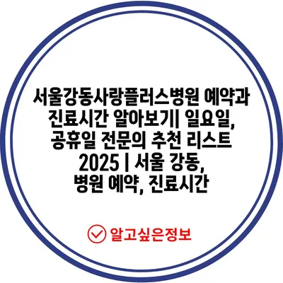 서울강동사랑플러스병원 예약과 진료시간 알아보기| 일요일, 공휴일 전문의 추천 리스트 2025 | 서울 강동, 병원 예약, 진료시간
