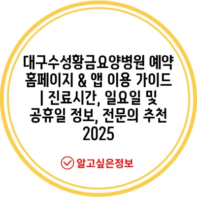 대구수성황금요양병원 예약 홈페이지 & 앱 이용 가이드 | 진료시간, 일요일 및 공휴일 정보, 전문의 추천 2025