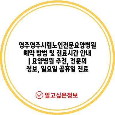 영주영주시립노인전문요양병원 예약 방법 및 진료시간 안내 | 요양병원 추천, 전문의 정보, 일요일 공휴일 진료