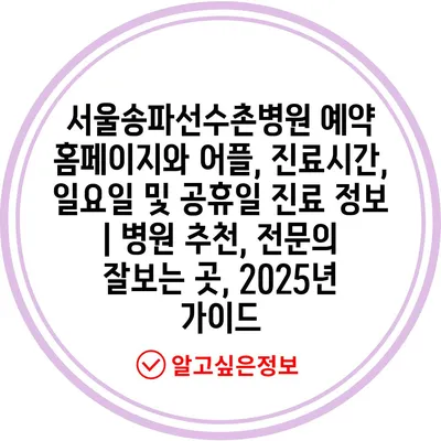 서울송파선수촌병원 예약 홈페이지와 어플, 진료시간, 일요일 및 공휴일 진료 정보 | 병원 추천, 전문의 잘보는 곳, 2025년 가이드