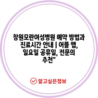 창원모란여성병원 예약 방법과 진료시간 안내 | 어플 앱, 일요일 공휴일, 전문의 추천”