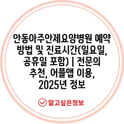 안동아주안제요양병원 예약 방법 및 진료시간(일요일, 공휴일 포함) | 전문의 추천, 어플앱 이용, 2025년 정보