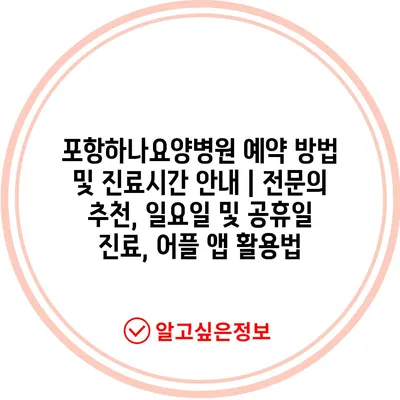 포항하나요양병원 예약 방법 및 진료시간 안내 | 전문의 추천, 일요일 및 공휴일 진료, 어플 앱 활용법