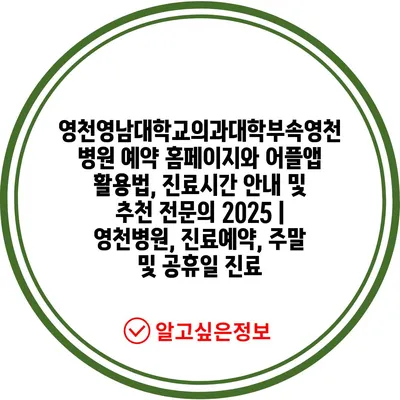 영천영남대학교의과대학부속영천병원 예약 홈페이지와 어플앱 활용법, 진료시간 안내 및 추천 전문의 2025 | 영천병원, 진료예약, 주말 및 공휴일 진료
