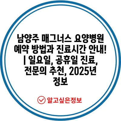 남양주 매그너스 요양병원 예약 방법과 진료시간 안내! | 일요일, 공휴일 진료, 전문의 추천, 2025년 정보