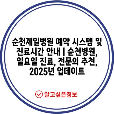 순천제일병원 예약 시스템 및 진료시간 안내 | 순천병원, 일요일 진료, 전문의 추천, 2025년 업데이트