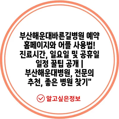 부산해운대바른길병원 예약 홈페이지와 어플 사용법! 진료시간, 일요일 및 공휴일 일정 꿀팁 공개 | 부산해운대병원, 전문의 추천, 좋은 병원 찾기”