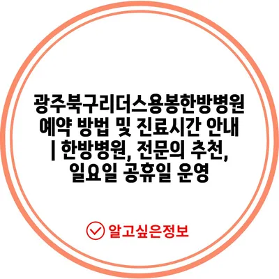 광주북구리더스용봉한방병원 예약 방법 및 진료시간 안내 | 한방병원, 전문의 추천, 일요일 공휴일 운영