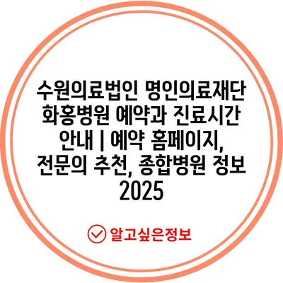 수원의료법인 명인의료재단 화홍병원 예약과 진료시간 안내 | 예약 홈페이지, 전문의 추천, 종합병원 정보 2025