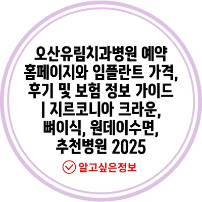 오산유림치과병원 예약 홈페이지와 임플란트 가격, 후기 및 보험 정보 가이드 | 지르코니아 크라운, 뼈이식, 원데이수면, 추천병원 2025