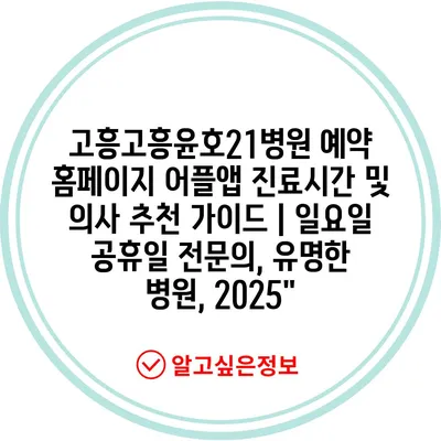고흥고흥윤호21병원 예약 홈페이지 어플앱 진료시간 및 의사 추천 가이드 | 일요일 공휴일 전문의, 유명한 병원, 2025″