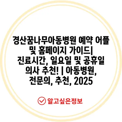 경산꿈나무아동병원 예약 어플 및 홈페이지 가이드| 진료시간, 일요일 및 공휴일 의사 추천! | 아동병원, 전문의, 추천, 2025
