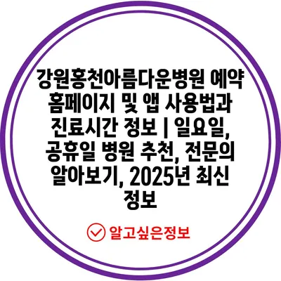 강원홍천아름다운병원 예약 홈페이지 및 앱 사용법과 진료시간 정보 | 일요일, 공휴일 병원 추천, 전문의 알아보기, 2025년 최신 정보