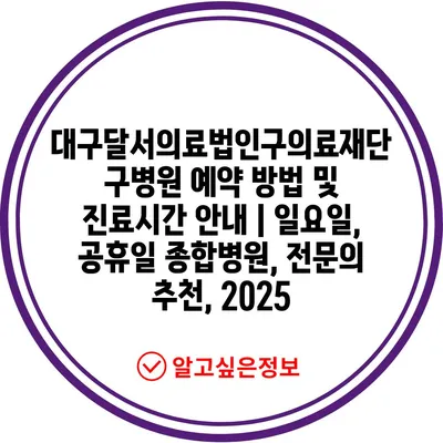 대구달서의료법인구의료재단 구병원 예약 방법 및 진료시간 안내 | 일요일, 공휴일 종합병원, 전문의 추천, 2025