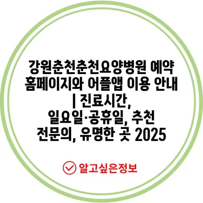 강원춘천춘천요양병원 예약 홈페이지와 어플앱 이용 안내 | 진료시간, 일요일·공휴일, 추천 전문의, 유명한 곳 2025