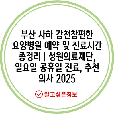 부산 사하 감천참편한 요양병원 예약 및 진료시간 총정리 | 성원의료재단, 일요일 공휴일 진료, 추천 의사 2025