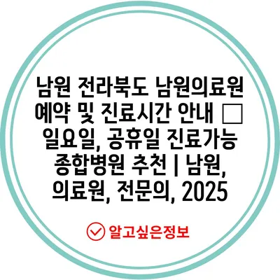 남원 전라북도 남원의료원 예약 및 진료시간 안내 – 일요일, 공휴일 진료가능 종합병원 추천 | 남원, 의료원, 전문의, 2025