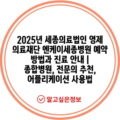 2025년 세종의료법인 영제 의료재단 엔케이세종병원 예약 방법과 진료 안내 | 종합병원, 전문의 추천, 어플리케이션 사용법