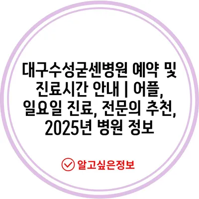 대구수성굳센병원 예약 및 진료시간 안내 | 어플, 일요일 진료, 전문의 추천, 2025년 병원 정보