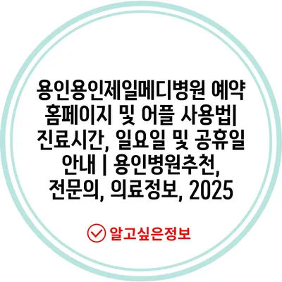용인용인제일메디병원 예약 홈페이지 및 어플 사용법| 진료시간, 일요일 및 공휴일 안내 | 용인병원추천, 전문의, 의료정보, 2025