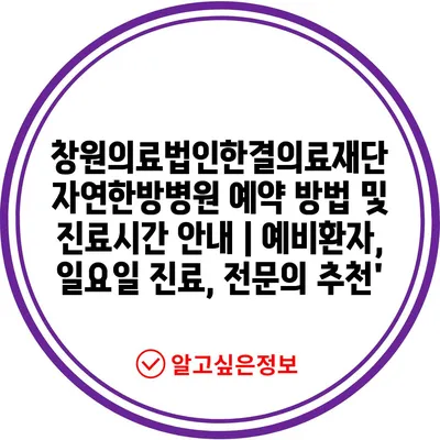 창원의료법인한결의료재단 자연한방병원 예약 방법 및 진료시간 안내 | 예비환자, 일요일 진료, 전문의 추천’