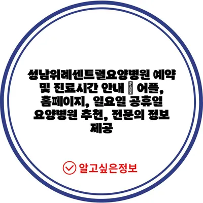 성남위례센트럴요양병원 예약 및 진료시간 안내 | 어플, 홈페이지, 일요일 공휴일 요양병원 추천, 전문의 정보 제공